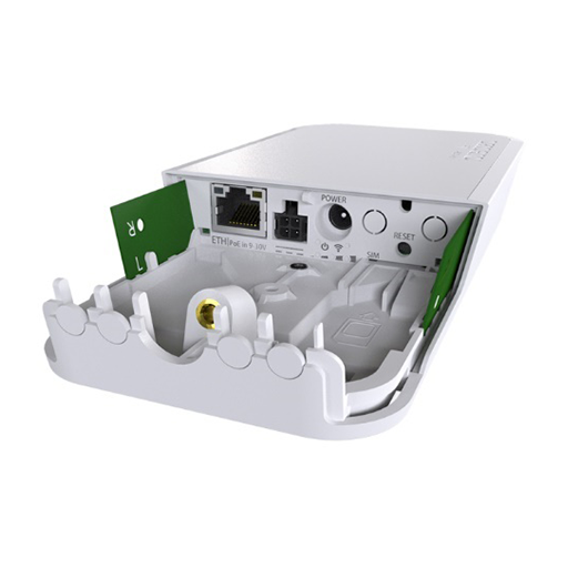 MikroTik’s RB-WAPLTE is a small weatherproof wireless access point with a built-in LTE4 modem that supports 2G, 3G and 4G (LTE) connectivity. Connect to the wAP’s built-in 802.11b/g/n wireless and access the LTE network from your phone or any other wireless device. The RB-WAPLTE also has one 10/100 Ethernet LAN port for your wired devices.